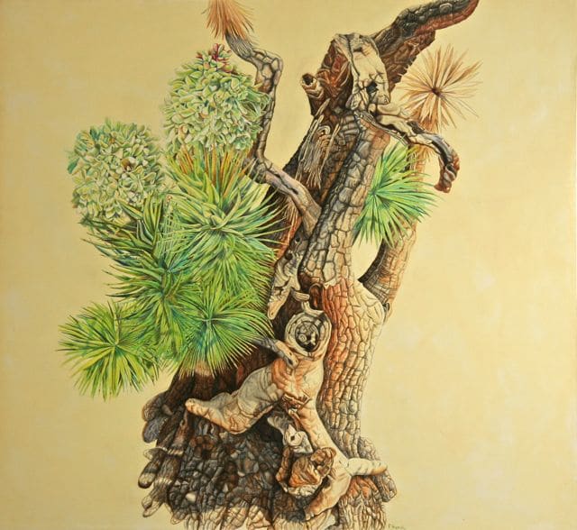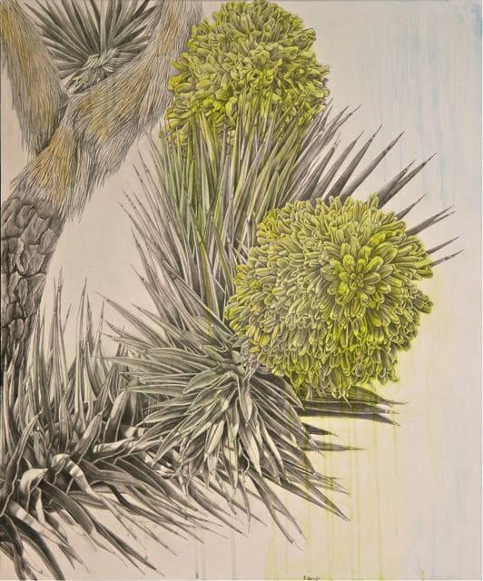Joshua Tree Blossoms by Fran Hardy, watercolor & graphite on panel, fixed & varnished, 36 x 30 – SOLD