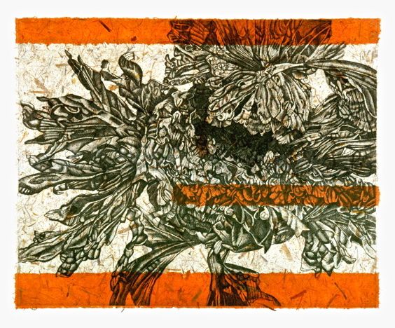 Vulnerability I by Fran Hardy, 2006, chine colle with hardground etching, 5/30, 28-1/2×31-1/2